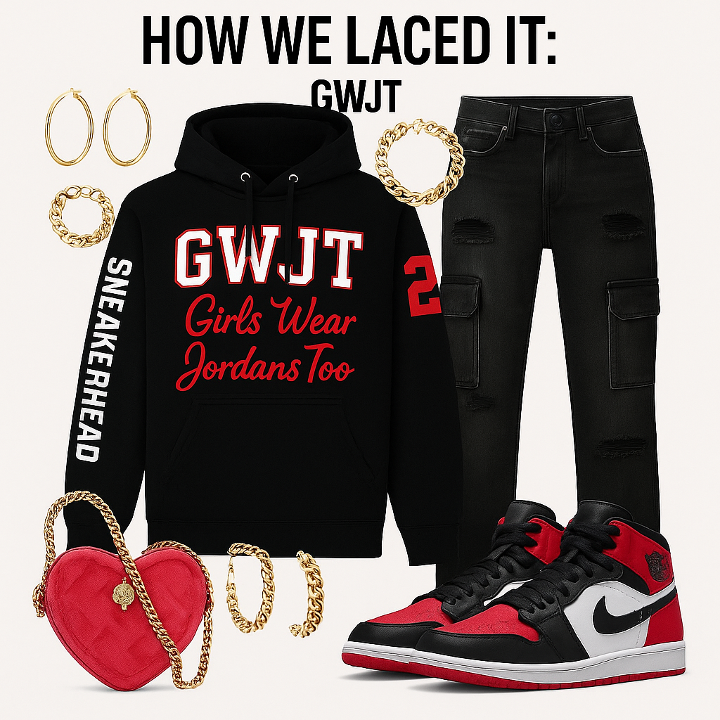 The Built From the Sole Up Jordan Hoodie is for the sneaker babes who didn’t just join the culture, they built it. Designed by Girls Wear Jordans Too, this hoodie is a tribute to every woman who’s laced her Js and made her own lane. Featuring bold red and white embroidery, a statement sleeve that screams “Sneakerhead,” and a confident graphic that turns heads from every angle, this piece embodies GWJT energy, bold, feminine, and unapologetically fly.