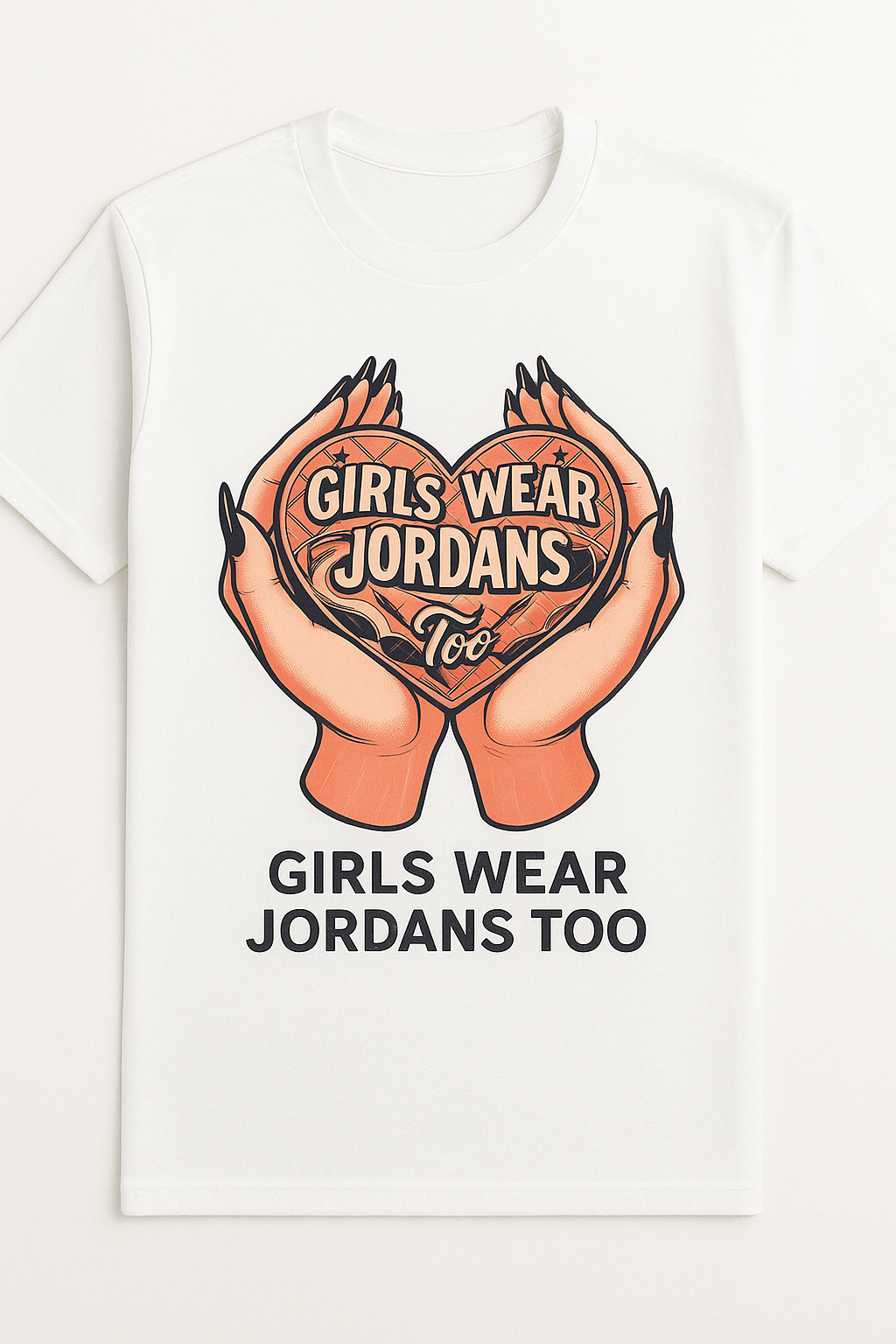 Basketball in our blood. Jordans on our feet. The Heart of the Game Tee is for the sneaker queens who live this culture with love and style. Featuring bold hands holding a basketball heart stamped with Girls Wear Jordans Too, this design is a straight-up statement: we don’t just play the game, we carry it with us.