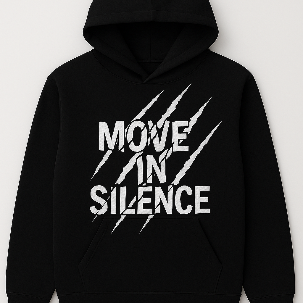 Real power don’t need noise. The “Move in Silence” Hoodie embodies that same stealth energy as the Retro Jordan Black Cat 4s…. sleek, lethal, and built for those who let their presence speak louder than words. The bold white slash design represents every win earned behind the scenes, every grind done in the dark before the spotlight hits.